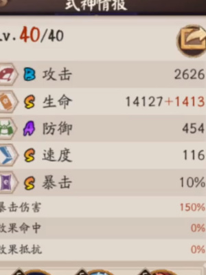 S生命,S速度,S暴击,御魂搭配主副词条围绕生命速度暴击搭配。