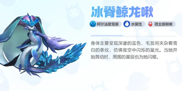 身体主要呈现深邃的蓝色,毛发间夹杂着雪白的条纹,仿佛夜空中闪烁的星光。当她开始舞动时,周围的星辰也为她闪耀。