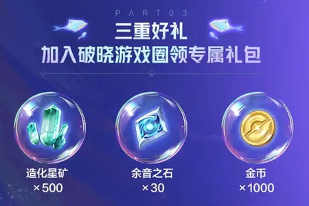 3、加入游戏圈还可以获得:造化星矿x500、余音之石x30、金币x1000。