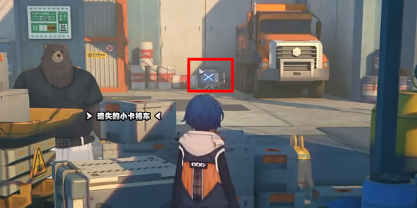 打开地图传送到仓储区,视角左转可以发现远处的小卡格车。
