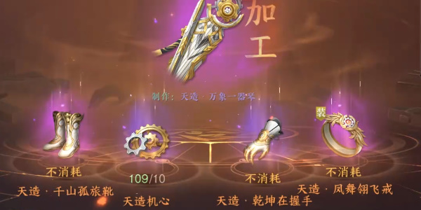 需要获取如下【三件装备】,以及十个【天造机心】,【天造机心】获取方式只需分解【千机万象】版本的装备即可获取。