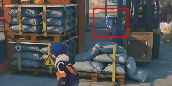 玩家首先传送到仓储区,玩家调整视野可以发现叉车后方有一个小卡格车,玩家可以绕路进入其中拿到。