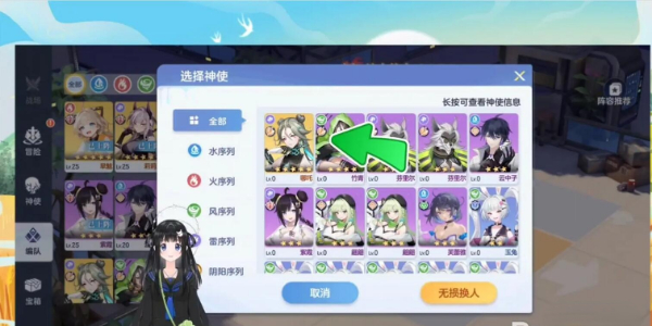 4、接着我们来到选择神使界面,我们选择想要上场的决胜进行点击。