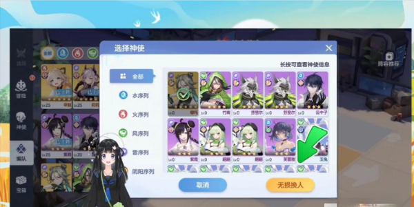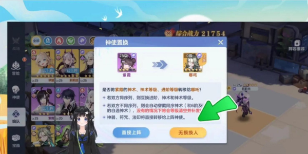 3、点击角色后屏幕中会出现提示弹窗,我们点击选择【无损换人】。