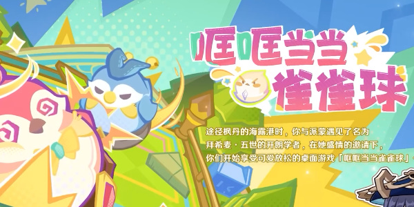 途径枫丹的海露港时,你与派蒙遇见了名为拜希麦·五世的开朗学者,在她盛情的邀请下。你们开始享受回爱放松的桌面游戏哐哐当当当当雀雀球。