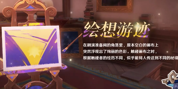 在剧演准备间的角落里,原本空白的画布上突然浮现出了绚丽的色彩。触碰画布之时,根据触碰者的经历不同,似乎能将人传送到不同的秘境…