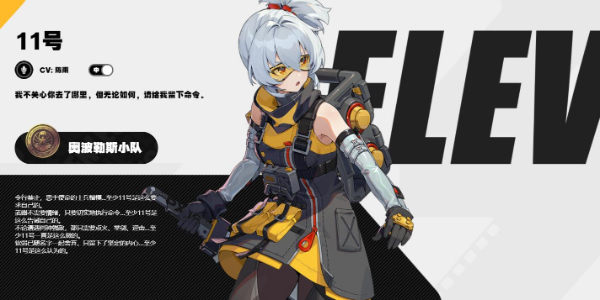 11号是奥波勒斯小队中的角色,完美士兵,冷静而高效,侵略如火,从不迷惘。是一位S级火系强攻角色,来历也非常的神秘。