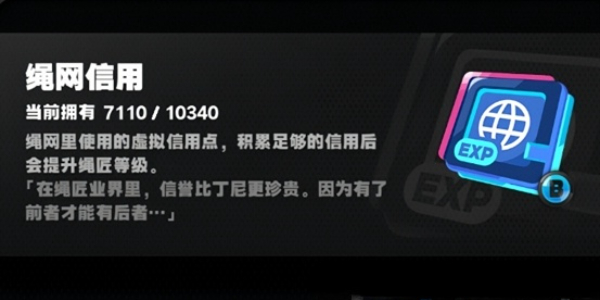 3、消耗1点电量,可以获得10点绳网信用,在打副本的过程中积累绳网信用。