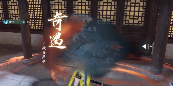 坐标汴京【1216,751】靠近【邓宝扇】释放任意技能触发奇遇,根据指引完成奇遇获得无念门信物【净尘帕】。