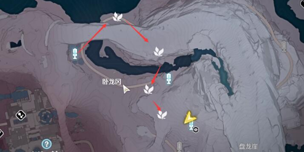 1、玩家首先传送到卧龙冈左上角的信标位置,然后离开信标后,沿着海岸线移动前往眠龙庭入口,在路上一共可以采集到24朵龙吐珠。
