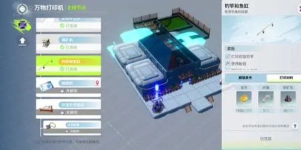 1、钓鱼系统的解锁等级为11级,远航者完成主线节点钓竿与鱼竿后,获得初级钓竿的打印图纸,然后收集材料打印即可获得初级鱼竿。