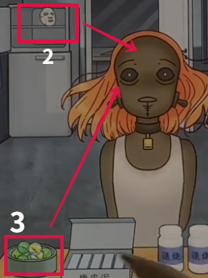 2.第二位病人,下滑【抽屉】,将【螺丝刀】拿出来把病人的【头盔】卸下来,左滑【冰箱】上层拿出【面膜】放在病人脸上,最后将【玻璃珠】安在病人【眼眶】中,点击【治疗完成】即可。