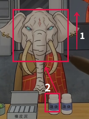 3.第三位病人,将大象【头套】向上拖动摘下,将【退烧药】递给病人,点击【治疗完成】即可。