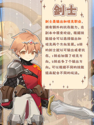 剑士是一位兼顾输出和承伤的角色,在一转职业之后,生存能力会大幅度加强,成为团队中不可或缺的存在。