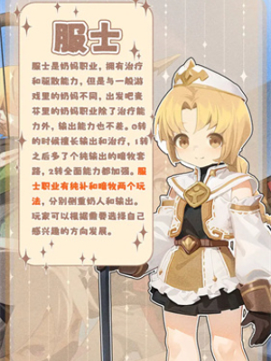 服士作为游戏中唯一的群体治疗角色,本身也有一定的强力输出能力,在二转后,技能伤害还会被强化,提高伤害总上限,兼顾治疗和输出于一体。