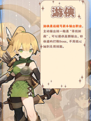 游侠是游戏中的远程弓箭手输出角色,适合新手养成,培养难度低,操作简单,对装备没有特别要求,且在boss战表现及其优秀,推图体验感偏差。