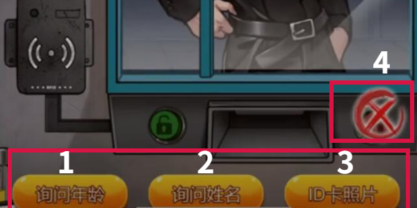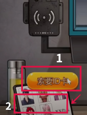 3.第二个人来之后,出现三个选项,选择【索要ID卡】,再点击图中左下角的【业主资料】与【ID卡】对比,名字不同判定伪人,点击【红色按钮】即可。