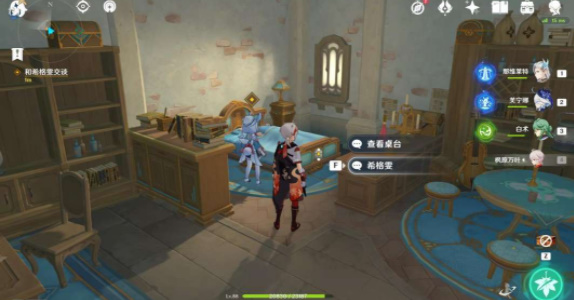 9、传送枫丹廷区西北方向锚点,往地图的西北方向走前往波顿的目的地,然后和希格雯进行对话,然后交互进入房间内。