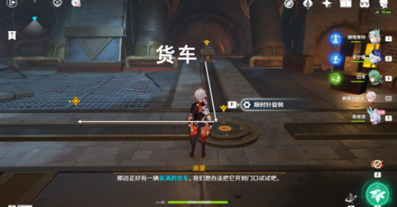 5、来到第二处解谜位置,面朝地图的东方向,按图中指引路线推货车1;