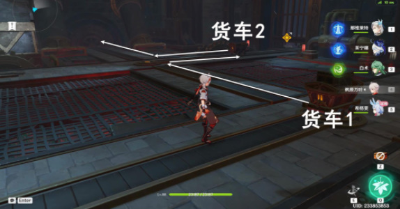 6、然后再按下图中指引路线先推货车2至角落,再推货车1至货车2位置完成解谜。
