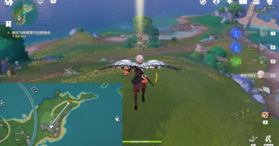 1、传送白露区东北方向锚点,往地图的东北方向飞来到与希格雯约定的地点。