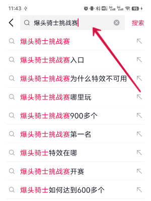 2、进入搜索界面,在搜索框中输入爆头骑士挑战赛后点击搜索即可。