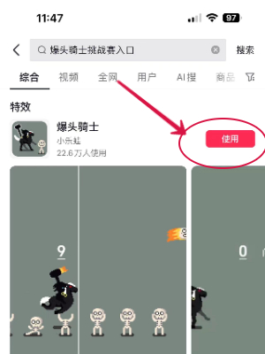3、在搜索结果界面我们就可以看到爆头骑士活动入口,点击使用即可进入。