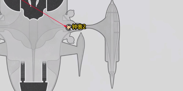 1、玩家打开地图,来到晖长石号上下图标记的房间位置,找到第二个钟表进行修复。