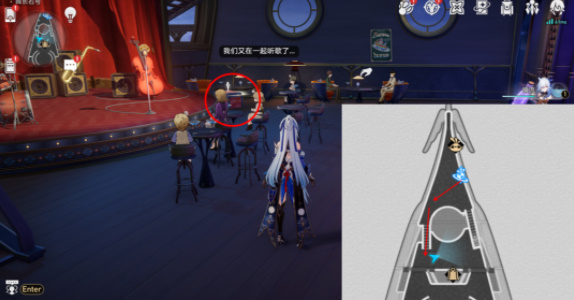 走进南方向的地下室,地下室是一个酒吧,回头看在舞台旁边有一个宝箱。