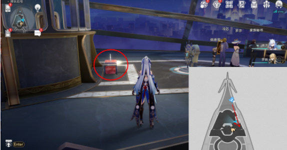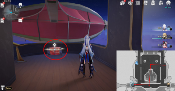 传送到船首的锚点,然后走上左侧的楼梯,回过头来就可以看到一个宝箱。