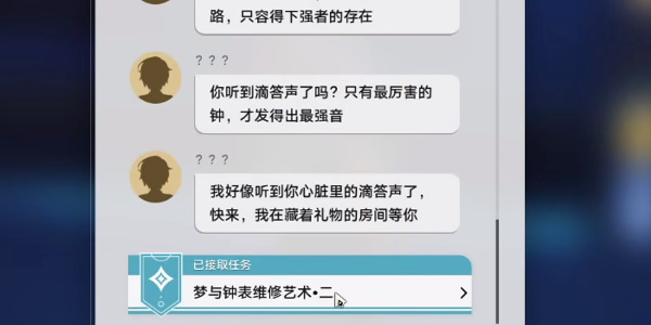 1、首先玩家将匹诺康尼所有的钟表解密完成后,就会收到一则短信,对话完后就可以接取到任务。
