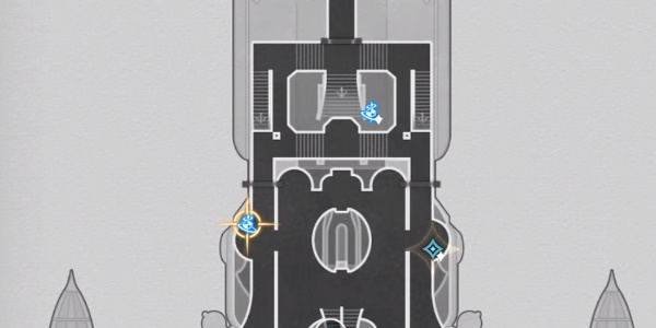 8、最后金色的齿轮玩家只需要剑门关模块1移回原位,然后将模块2旋转到下图所示的形状就可以拿到金色的齿轮。
