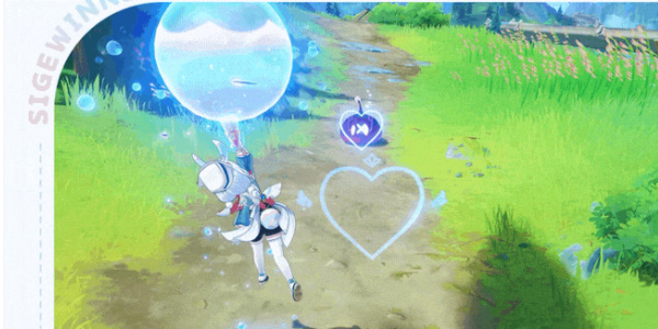 激愈水球将在附近的敌人间弹跳,命中敌人时基于希格雯的生命值上限,造成水元素伤害;弹跳时,为队伍中附近除希格雯自己外的所有角色恢复生命值,回复量受益于希格雯自己的生命值上限。