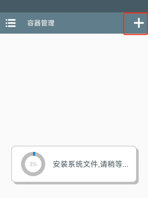 1、首先直接下载游戏APP后,然后进行解压安装启动器,等待安装完成好系统文件后,点击右上角【+】号创建容器;如下图所示。
