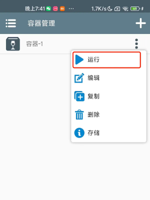 3、最后创建容器后在右边【三个点】,然后点击【运行】模拟器,并在磁盘中找到游戏的安装程序进行安装就可以玩了。