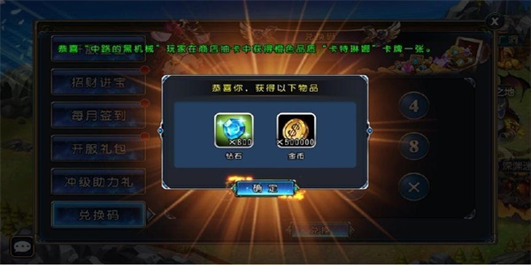 4、进入到兑换页面之后,我们就把获取到的兑换码输入进去,就可以领取到相对应的游戏奖励了。