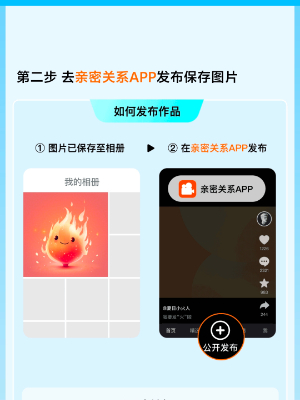 3、接着玩家来到亲密关系app,发布刚刚保存的小火人图片;