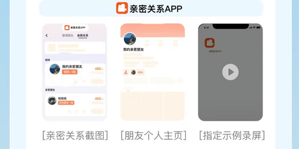 5、接着上传自己想要一起合养的朋友,在亲密关系app中进行截图或录屏。
