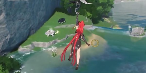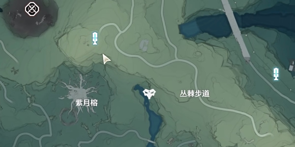 2、传送到丛荆步道左上角的传送锚点,然后往东南方向走,前往图中标记的位置,可以在水边发现闪光乌龟。