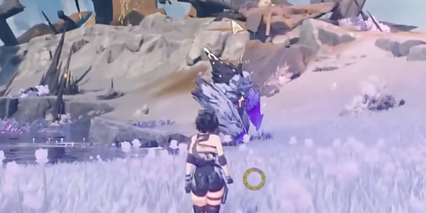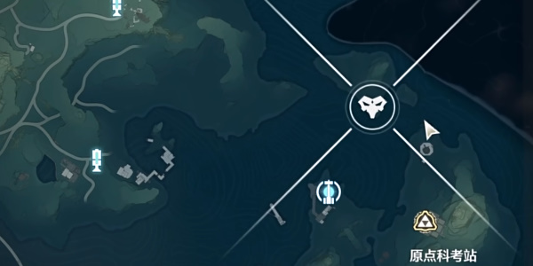 1、玩家打开地图传送到原点科考站,然后前往图中标记的位置,然后击败闪光的磐岩守卫,击败后收取声骸。