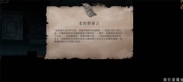 来到图中的位置,点击右上角进行查看就可以获得老旧的遗言。
