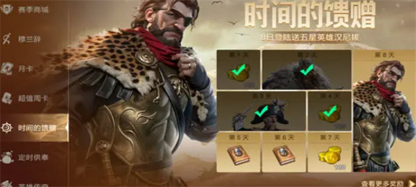 每日登录获取奖励,签到8日可以获取3名英雄。