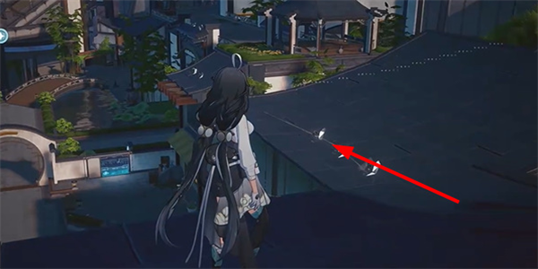 3、任务需要我们根据屋檐上提示的路线前进,采集上面的纸鸟。