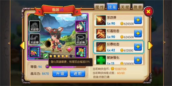 炮娘发射出一颗巨大炮弹敌人接触炮弹后会发生爆炸,对一名敌人造成6995(+215%物攻收益)点物理伤害。
