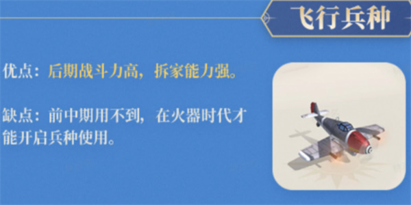 4、飞行单位属于游戏中的独立兵种没有明确的克制关系,纯看兵种属性。尤其需要领主自身的科技研究度来提升兵种伤害。游戏进度到达中后期才能出来,需要玩家有足够的阵容深度来培养飞行兵种。
