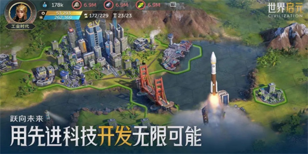 4、时代跃迁需要玩家拥有充足的生产力和科技积分。前者需要通过获取和生产资源来累积,后者则是通过解锁新的科技来累积。当二者同时满足时代变迁的要求后,玩家就可以将文明引入新的时代。新时达会带来更多的资源获取途径和更丰富的科技项目,如此周而复始,更先进的文明就会对低等文明视线战力碾压。