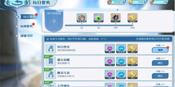 请务必做完,因为这是经验的重要来源,尤其是游戏前期,早一点提升等级就早一点解锁对应的玩法。另外每日活跃均可获得800金币,2500即可十连抽一次,所以每日要务千万不要错过。每周要务也相同,不过其提供的大部分为金币奖励,也是金币的重要来源。