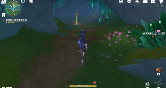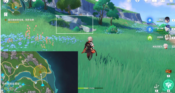 3、前往隐秘的宝库寻找宝藏,向地图的上方走,爬到坡上。