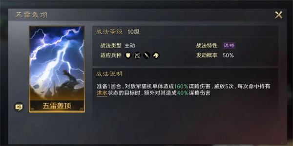 三国谋定天下五雷轰顶战法怎么样?在游戏中为了提高武将的强度一定要搭配适合的战法,五雷轰顶战法非常适合谋略型武将使用,下面给大家推荐了几个可以搭配战法使用的阵容,有兴趣的玩家和小编一起来查看吧。