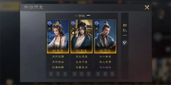 甄洛通过增伤和驱散,能为郭嘉创造优秀的输出环境,荀攸给敌人施加“洪水”,配合郭嘉多次施放【五雷轰顶】(郭嘉有机会跳过准备回合在释放一次技能),打出更高的伤害。